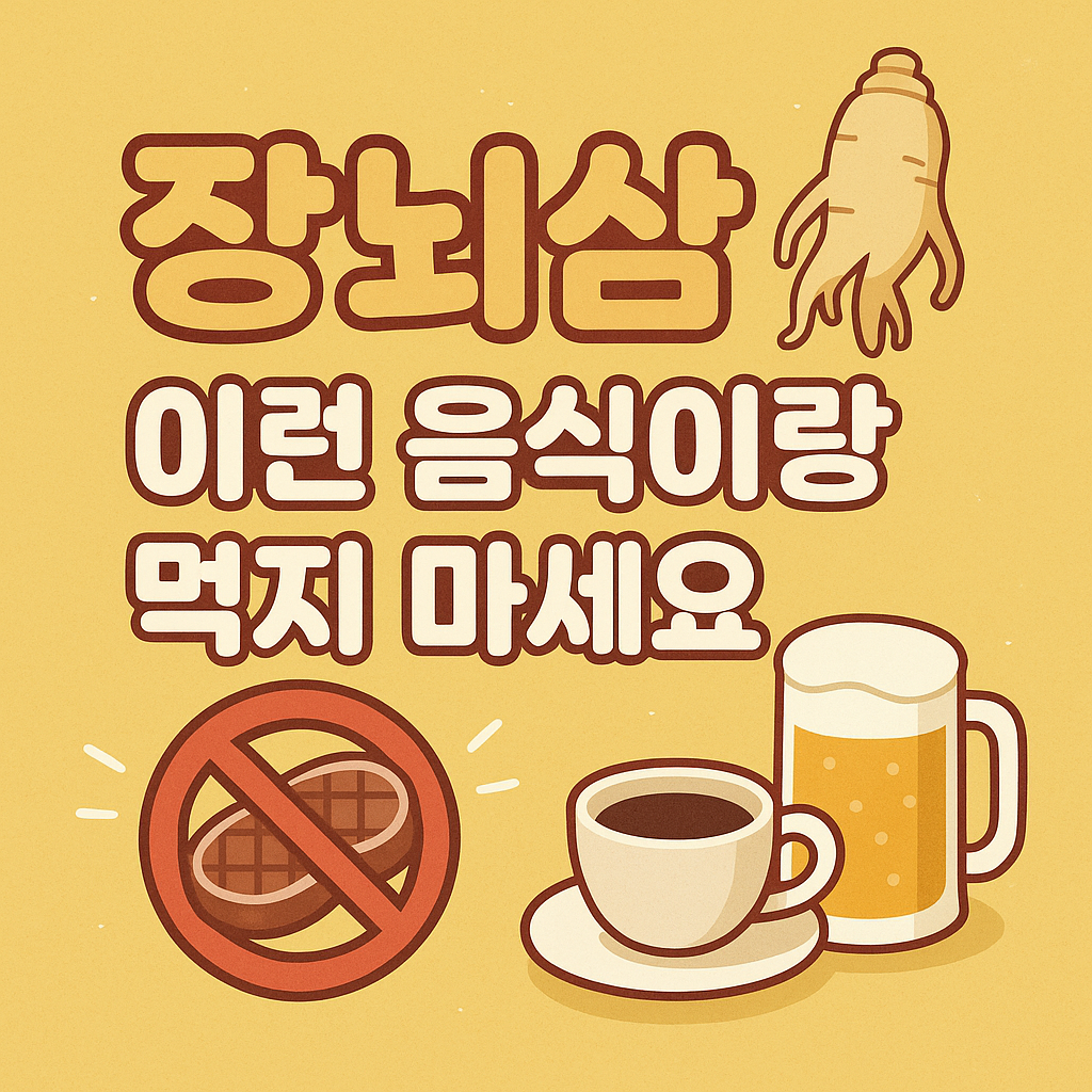 장뇌삼과 카페인, 술, 기름진 음식은 함께 먹지 않는 것이 좋아요. 특히 술과 함께 섭취하면 간에 부담을 줄 수 있으니 주의하세요. 위장이 약한 분은 찬 음식과의 조합도 피하는 게 좋습니다.