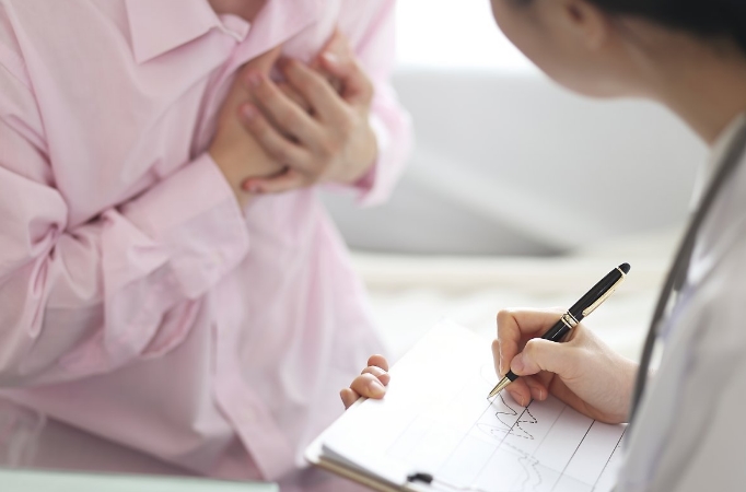 Q8. 두근거릴 때마다 숨이 차고 가슴이 답답해요. 심장마비 전조인가요?