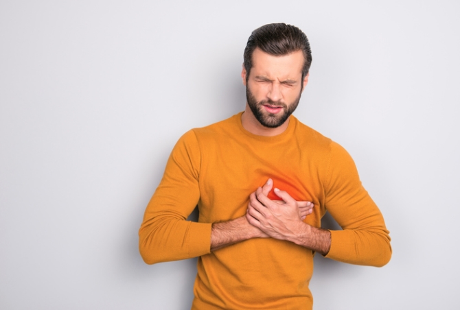 Q8. 두근거릴 때마다 숨이 차고 가슴이 답답해요. 심장마비 전조인가요?