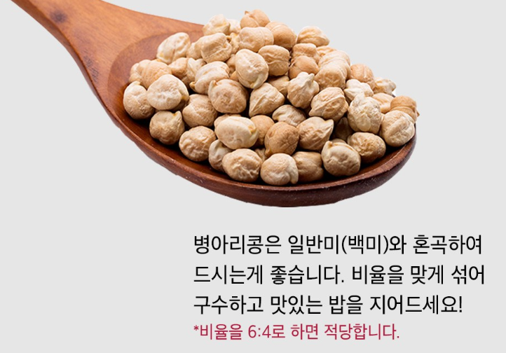 잡곡밥처럼 병아리콩을 넣을 때는 쌀 기준 1컵당 병아리콩 반 컵 정도가 적당합니다. 콩을 미리 삶아 넣으면 밥알과 식감이 잘 어우러지고, 불린 생콩을 바로 넣을 경우에는 물을 약간 더 추가해주는 것이 좋아요.
