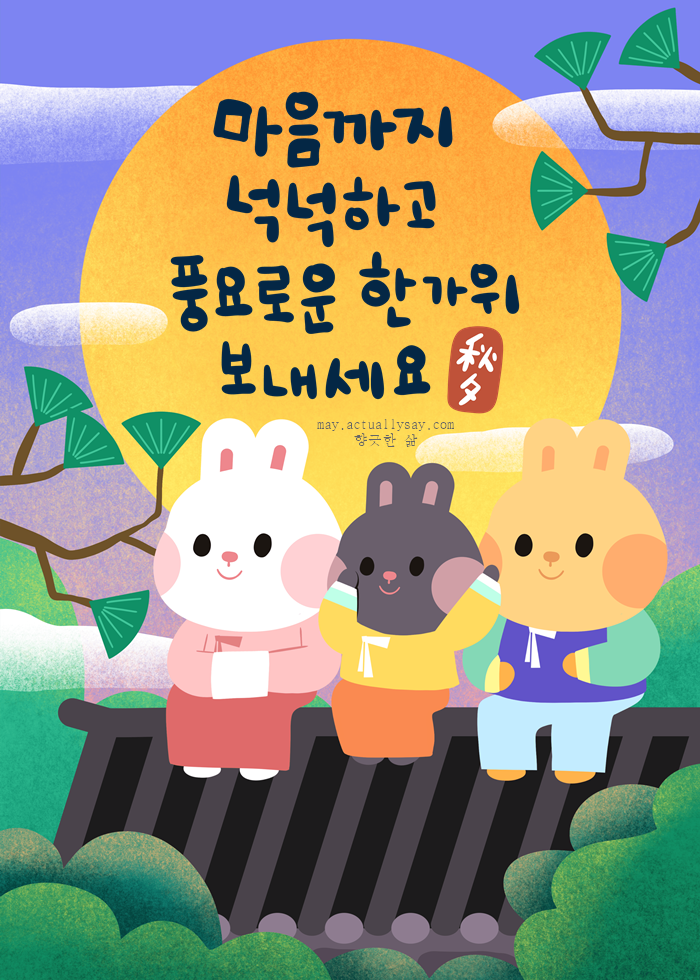 가을바람이 불어오면 마음도 함께 편안해지는 것 같습니다. 이번 한가위, 사랑하는 가족과 함께 웃음과 행복을 나누며 기쁨이 가득한 시간이 되길 바랍니다. 보름달처럼 넉넉한 마음이 여러분의 삶에 스며들기를 기원합니다.