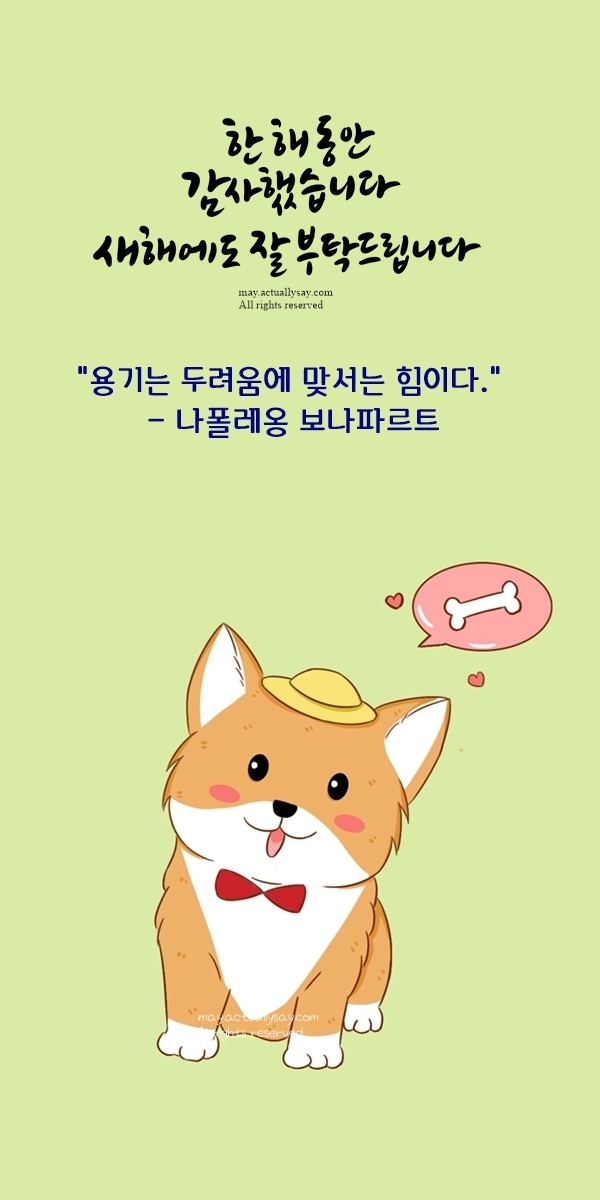 남에게 의지하기보다 자신의 소신을 따라 나아가는 모습이야말로 진정한 주체적인 삶일 것입니다. 새해에는 소신을 가지고 스스로의 길을 개척하며 빛나는 한 해를 만들어가시길 바랍니다. 설 명절 동안 즐겁고 행복한 시간을 보내세요.