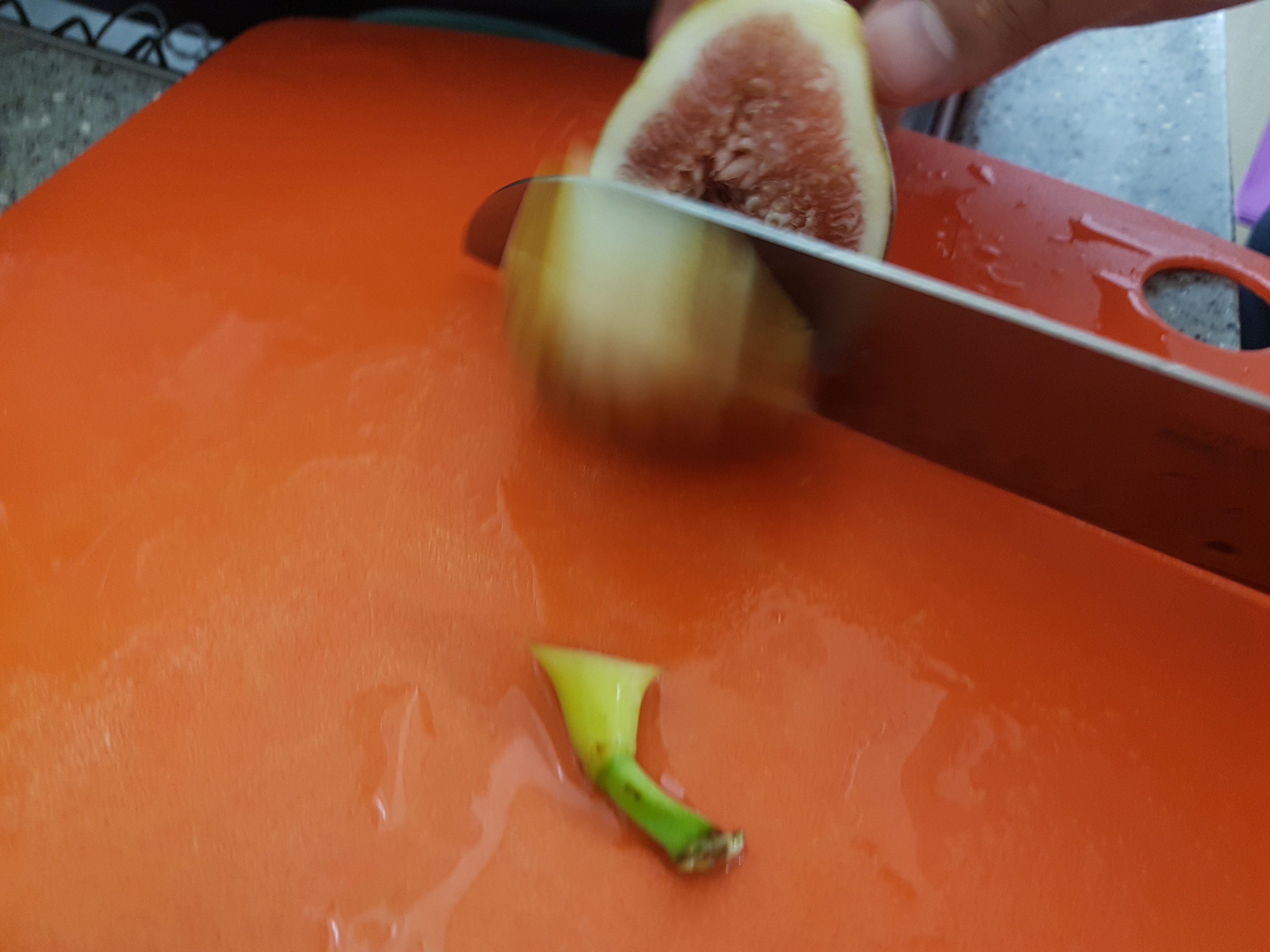 1. 신선한 무화과 500g을 준비하여 꼭지를 제거하고 적당한 크기로 자릅니다.
